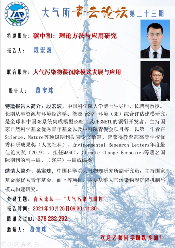 【10.25】青云论坛第二十三期 —大气污染与调控