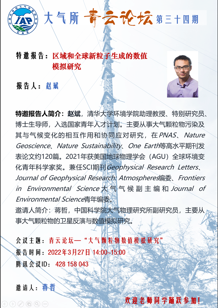【3.27】青云论坛第三十四期—“大气颗粒物数值模拟研究”