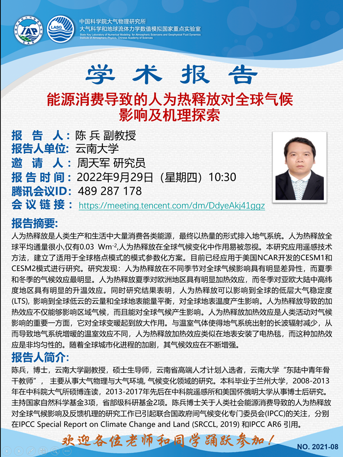 【9.29】能源消费导致的人为热释放对全球气候影响及机理探索