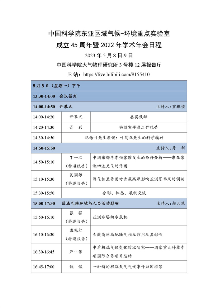 【5.8-5.9】中国科学院东亚区域气候-环境重点实验室成立45周年暨2022年度学术年会