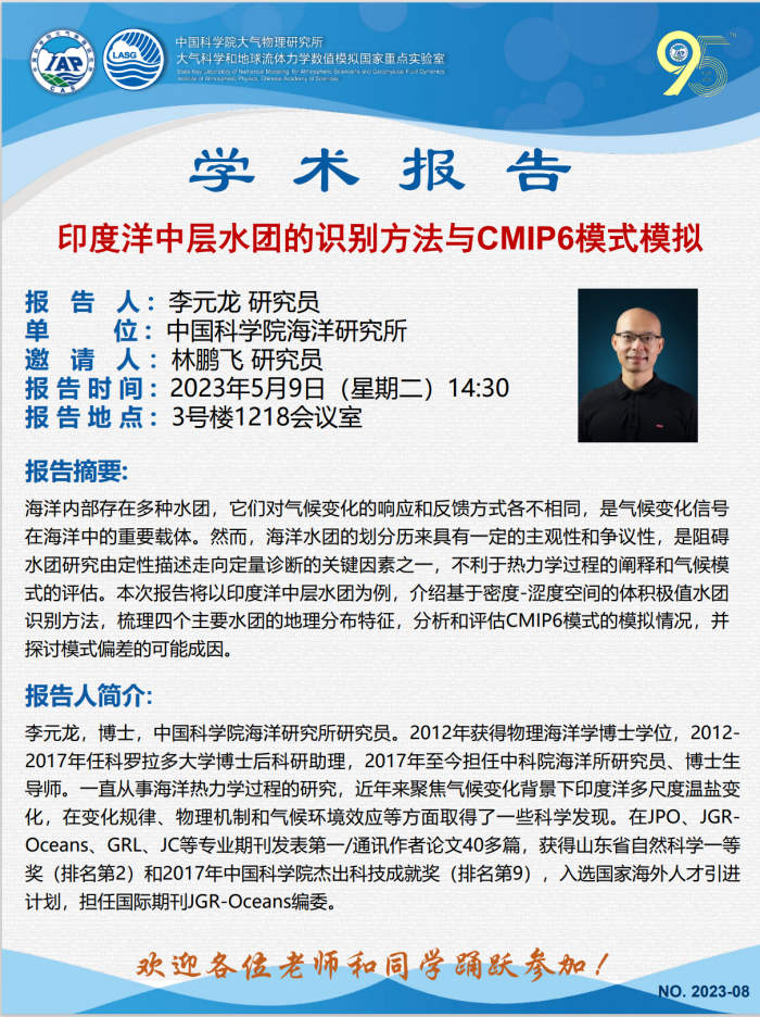 【5.9】印度洋中层水团的识别方法与CMIP6模式模拟