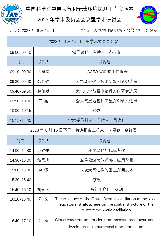 【6.15】中国科学院中层大气和全球环境探测重点实验室2023年学术委员会会议暨学术研讨会