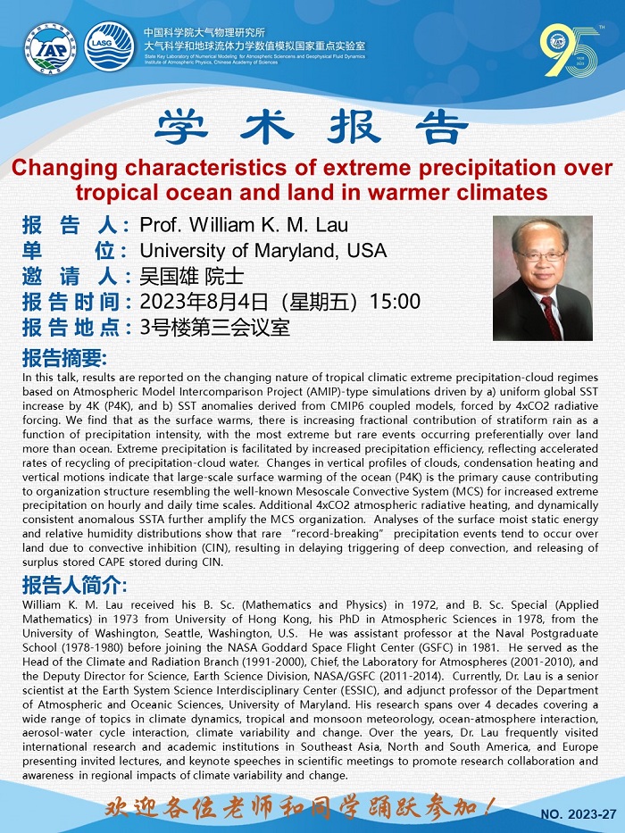 【8.4】Changing characteristics of extreme precipitation over tropical ocean and land in warmer climates
