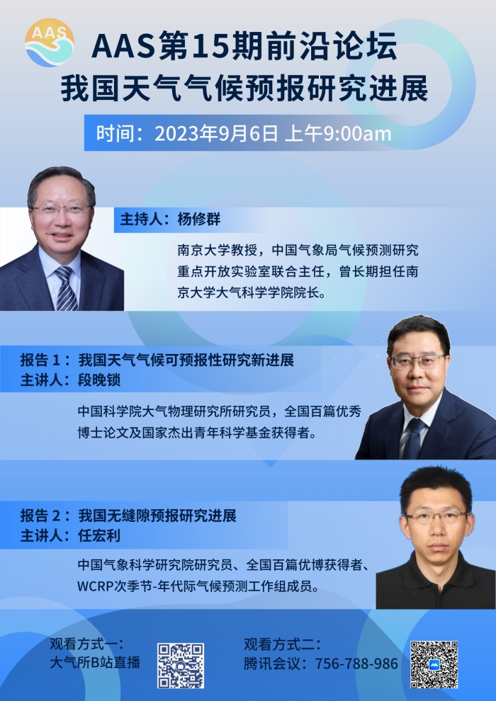【9.6】AAS第15期前沿论坛 | 我国天气气候预报研究进展