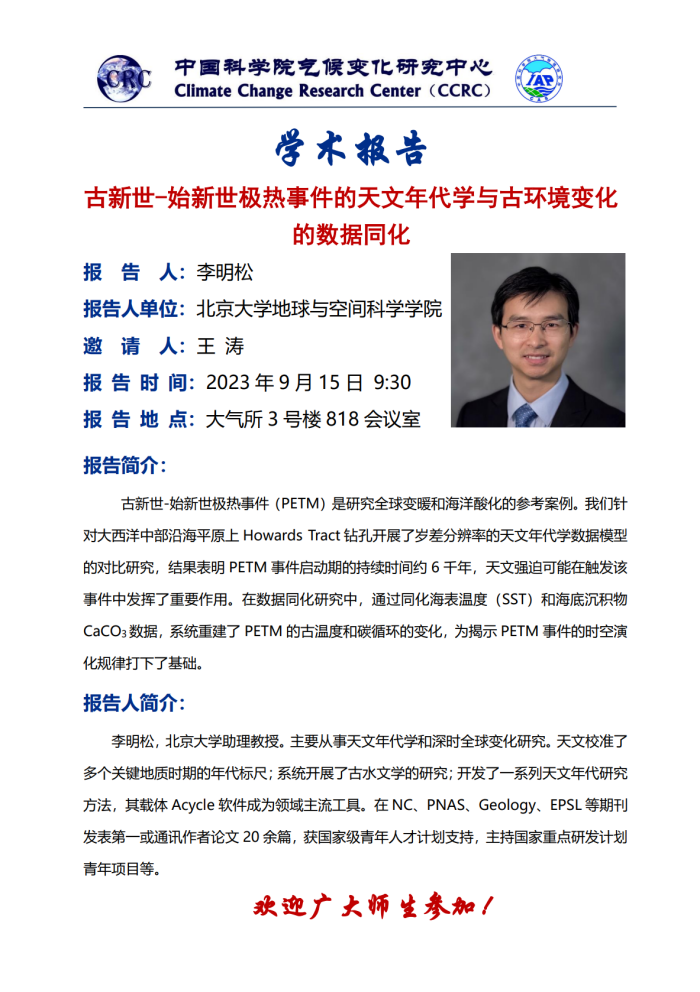 【9.15】古新世-始新世极热事件的天文年代学与古环境变化的数据同化