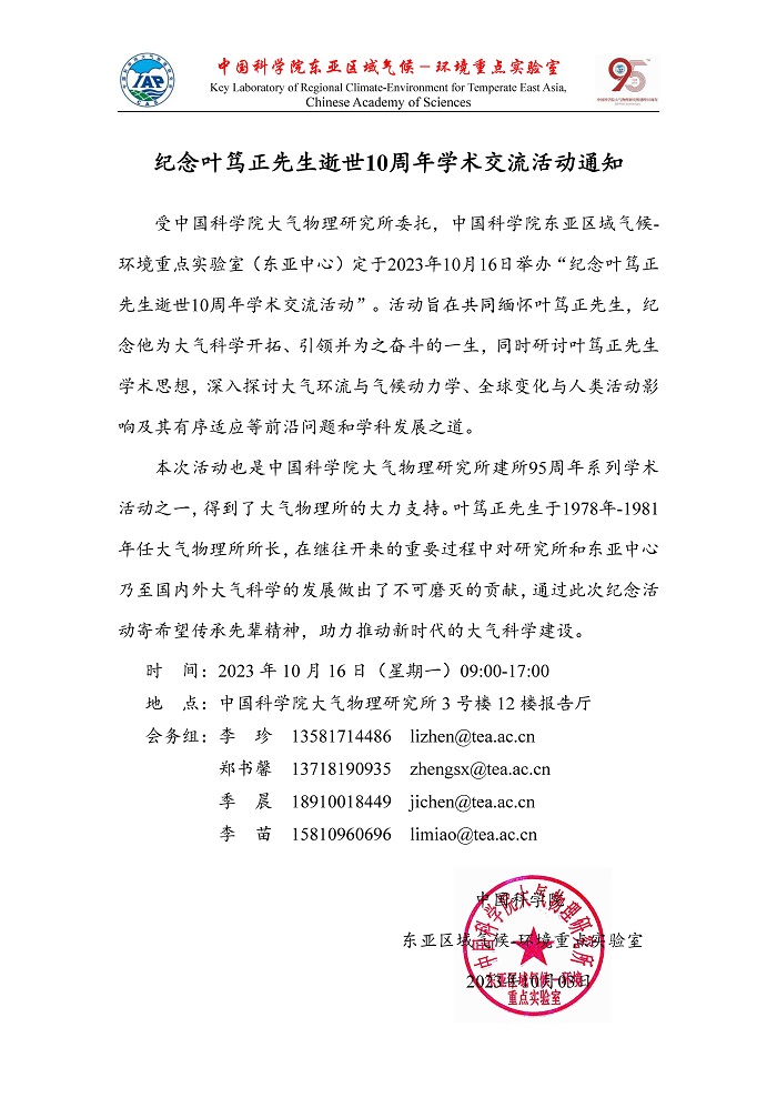 【10.16】纪念叶笃正先生逝世10周年学术交流活动通知
