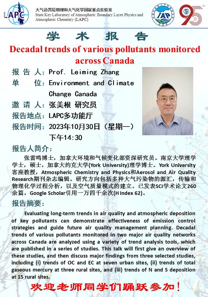 【10.30】Decadal trends of various pollutants monitored across Canada