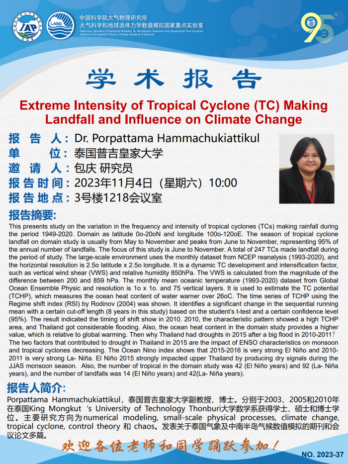 【11.4】Extreme Intensity of Tropical Cyclone (TC) Making Landfall and Influence on Climate Change