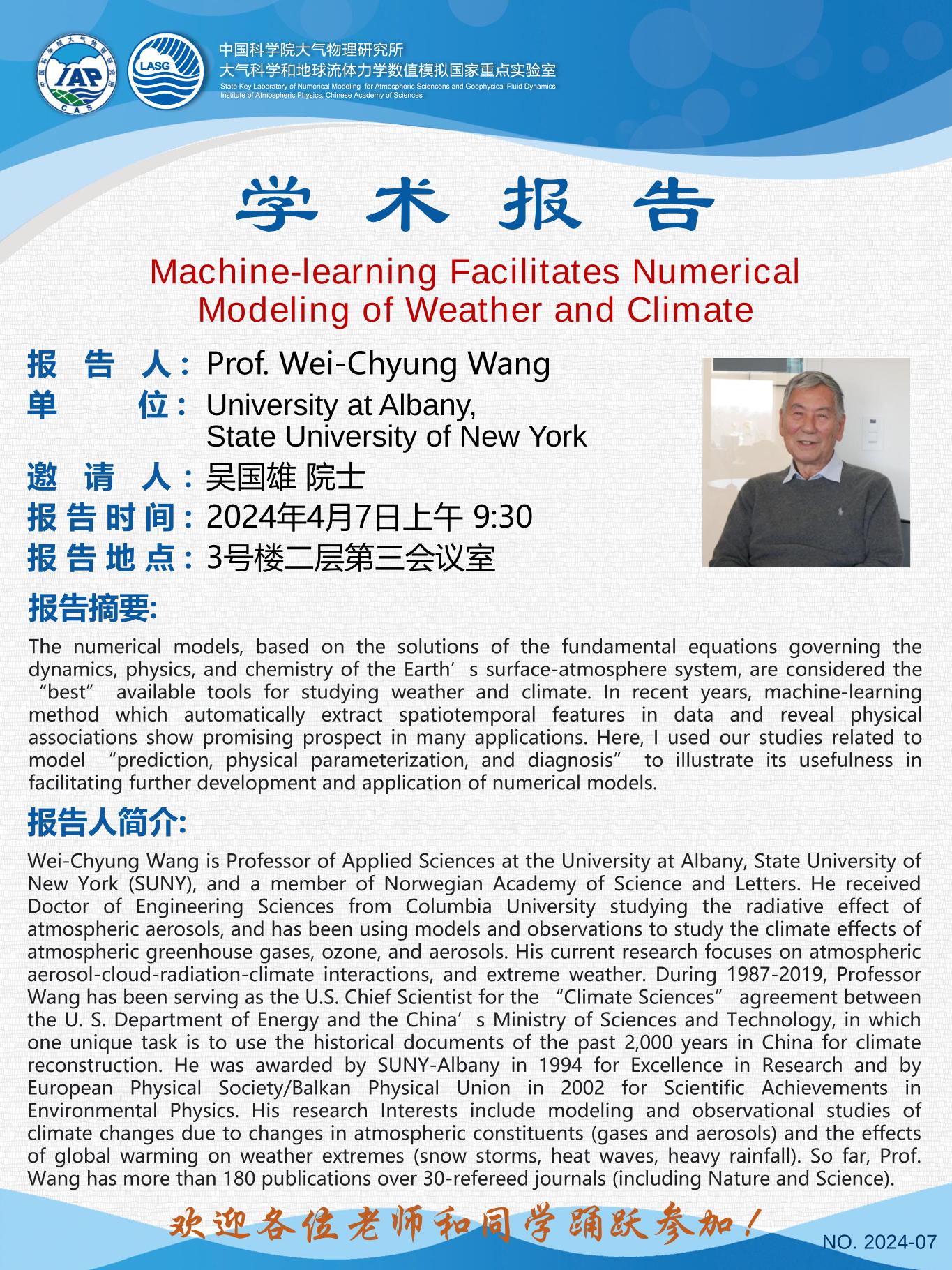 【4.7】Machine-learning Facilitates Numerical Modeling of Weather and Climate