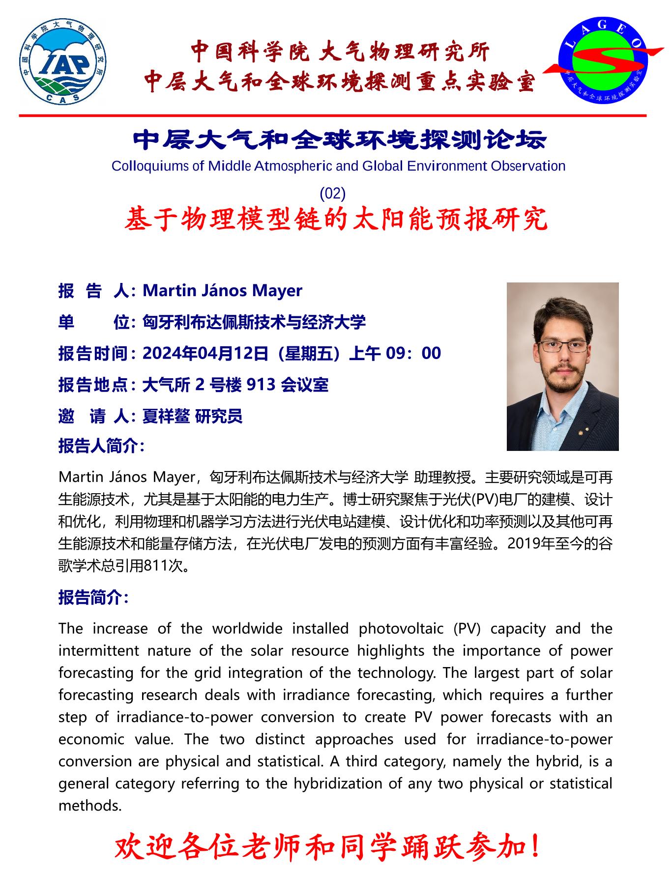 【4.12】基于物理模型链的太阳能预报研究