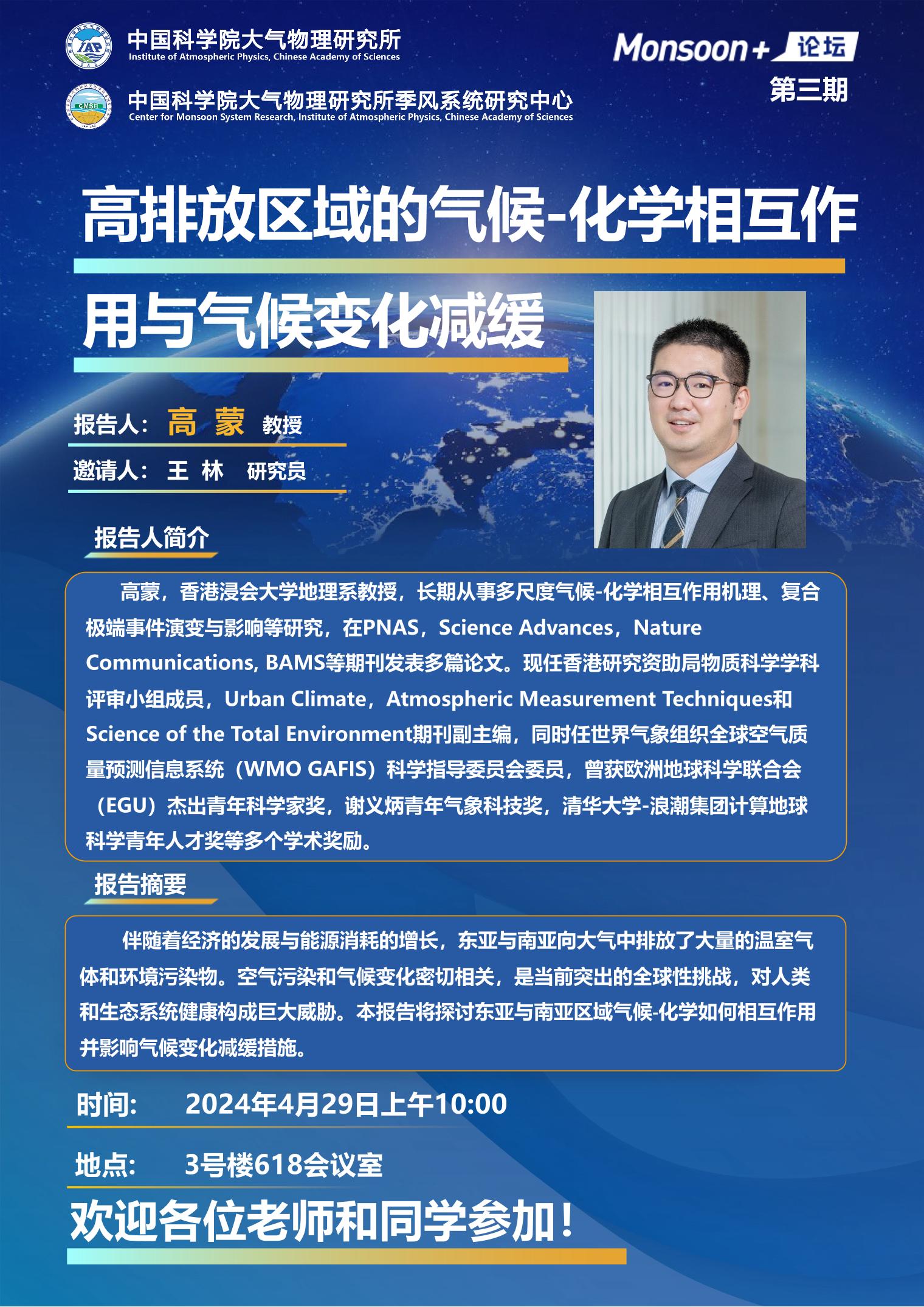 【4.29】高排放区域的气候-化学相互作用与气候变化减缓