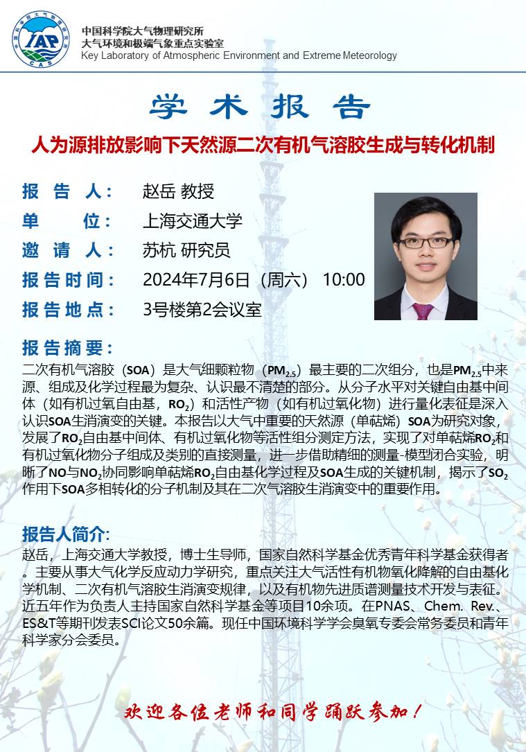 【7.6】人为源排放影响下天然源二次有机气溶胶生成与转化机制