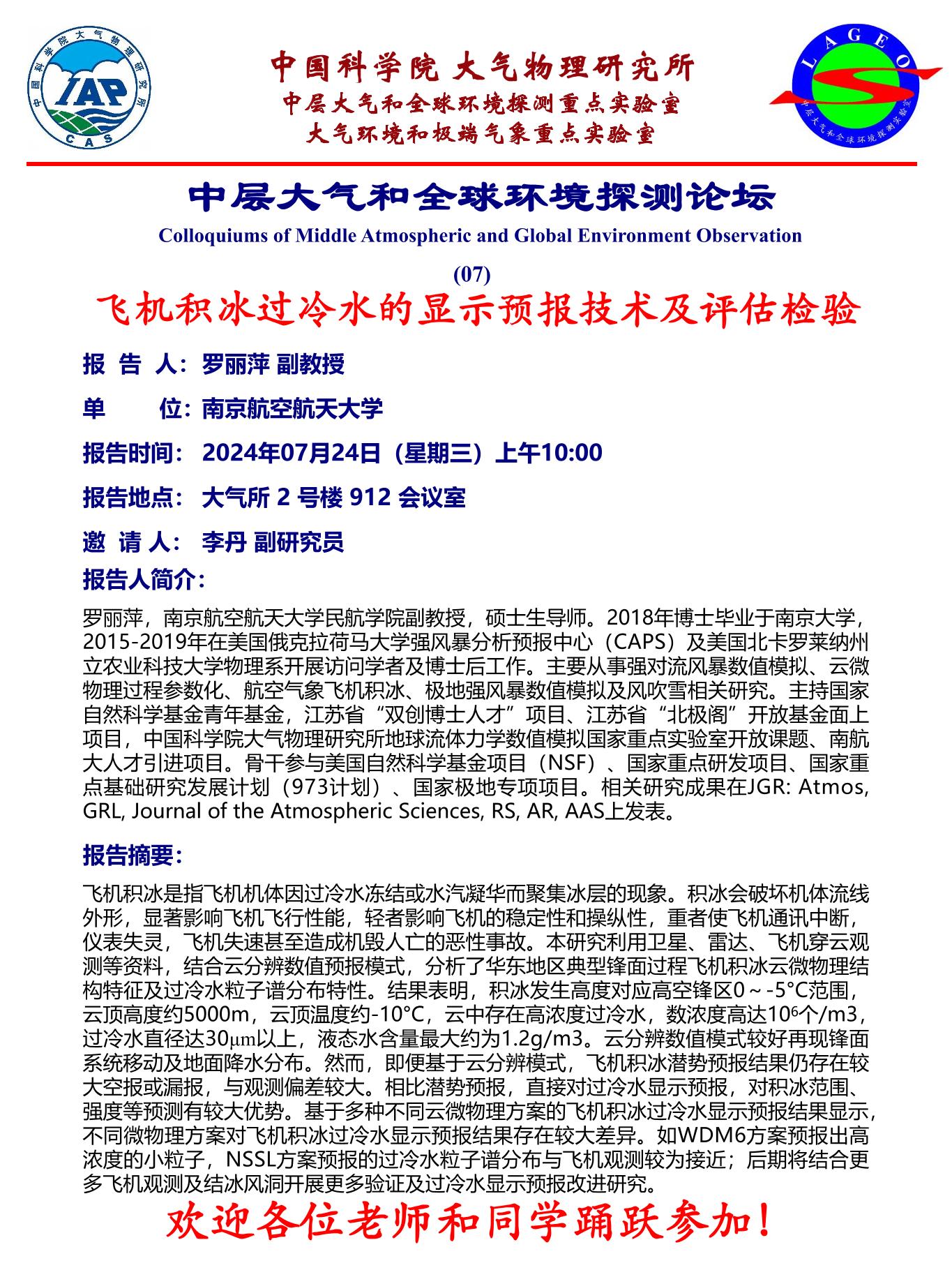 【7.24】飞机积冰过冷水的显示预报技术及评估检验