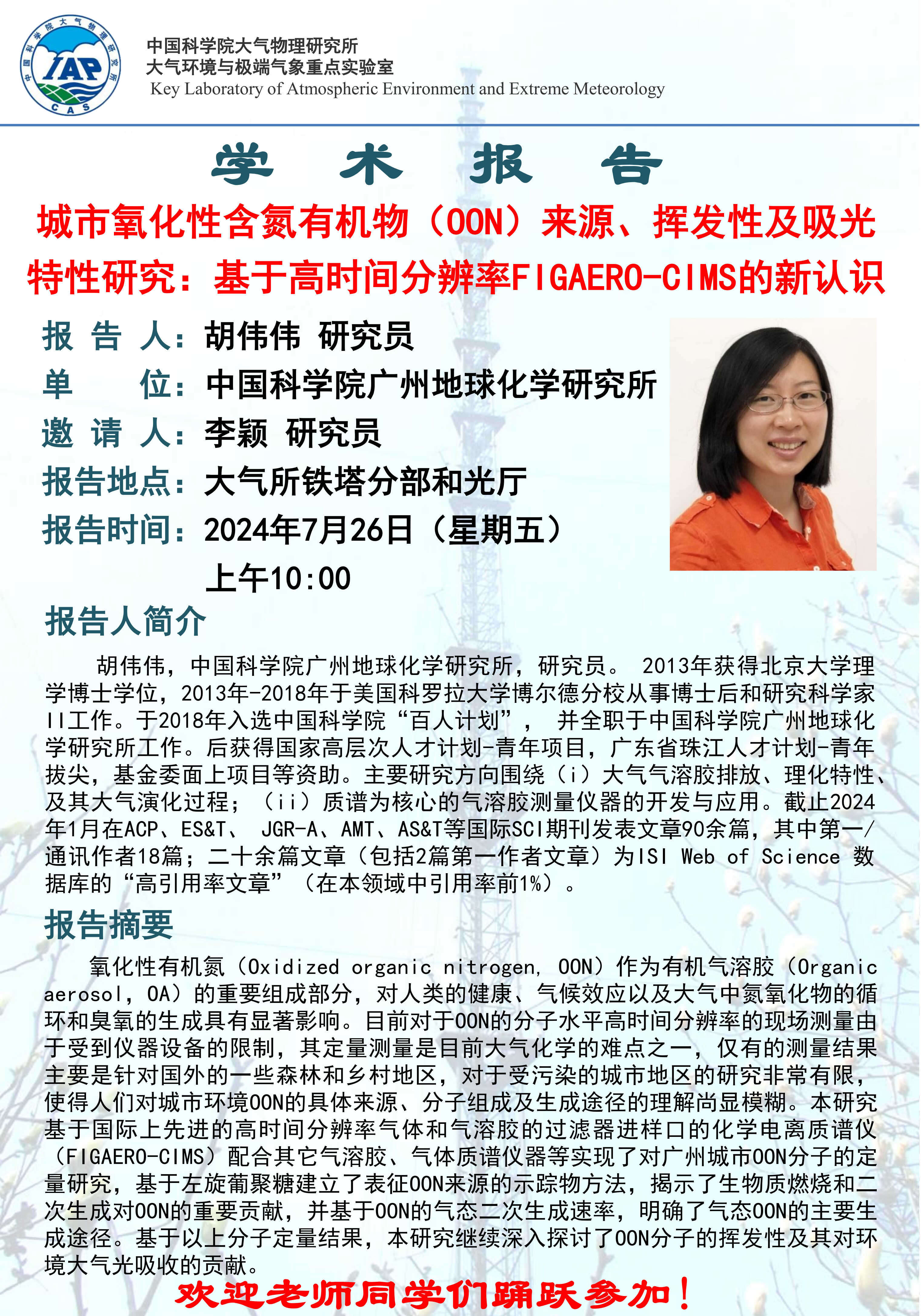 【7.26】城市氧化性含氮有机物(OON)来源、挥发性及吸光特性研究:基于高时间分辨率FIGAERO-CIMS的新认识