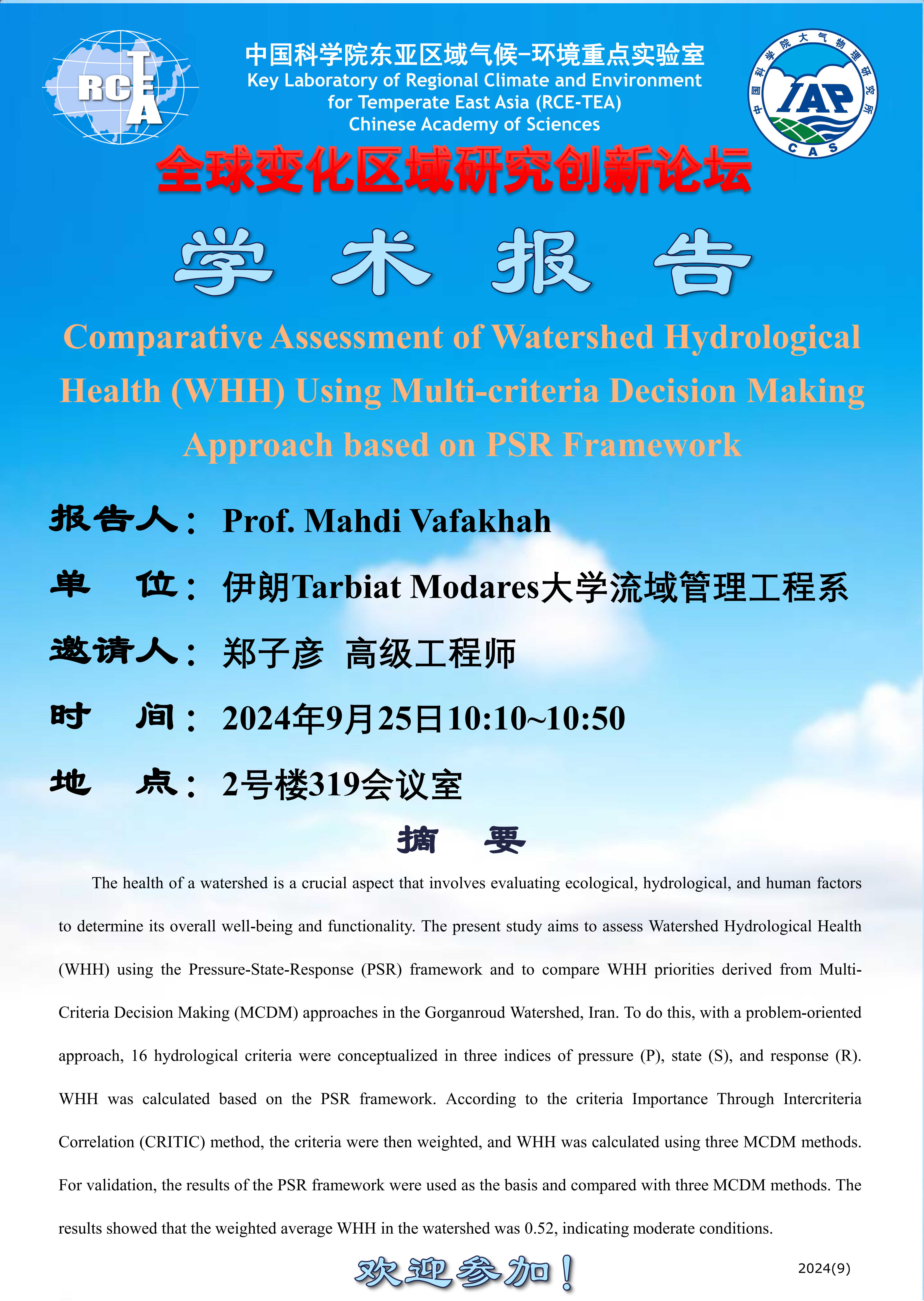【9.25】Comparative Assessment of Watershed Hydrological Health (WHH) Using Multi-criteria Decision Making Approach based on PSR Framework