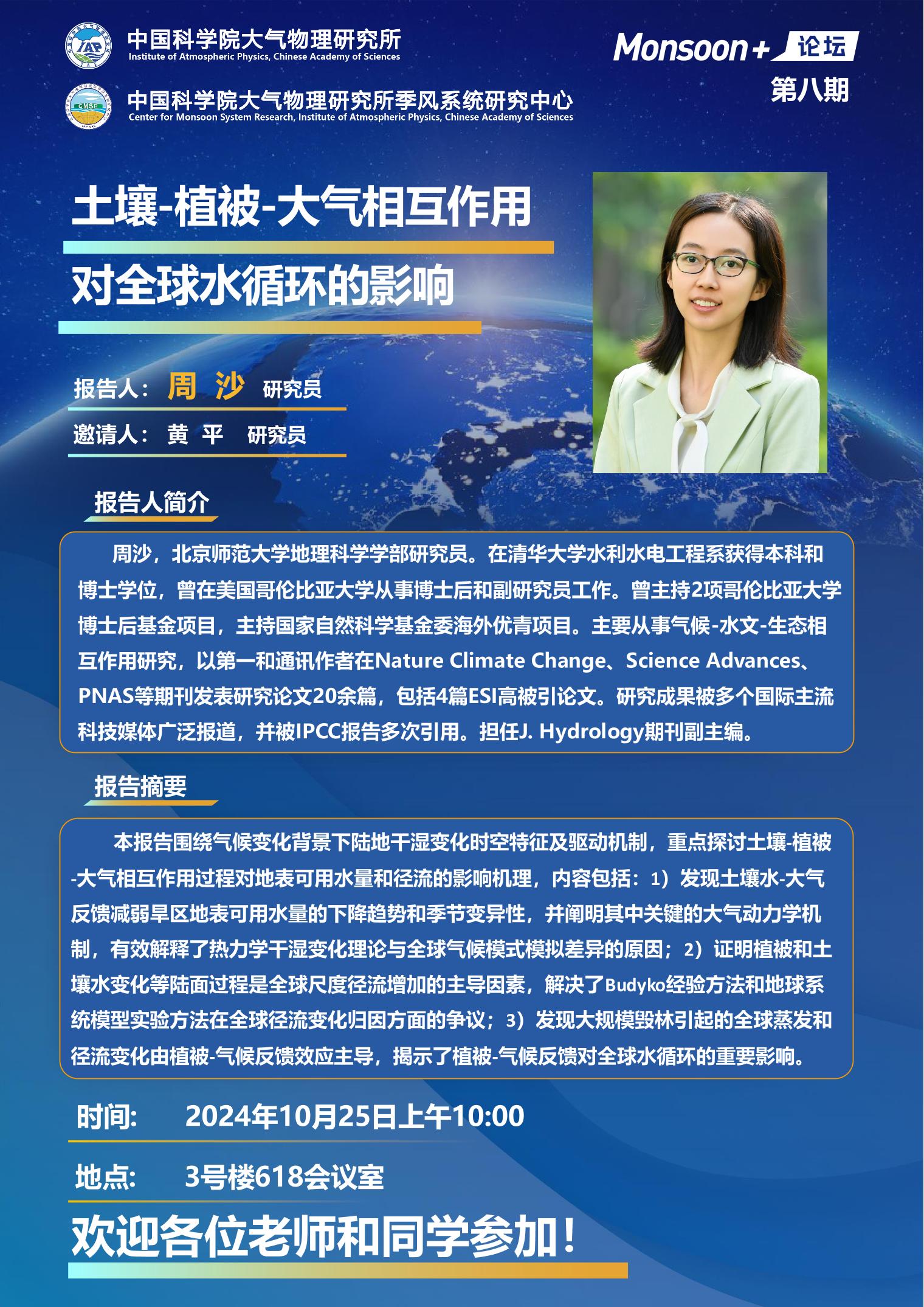【10.25】土壤-植被-大气相互作用对全球水循环的影响