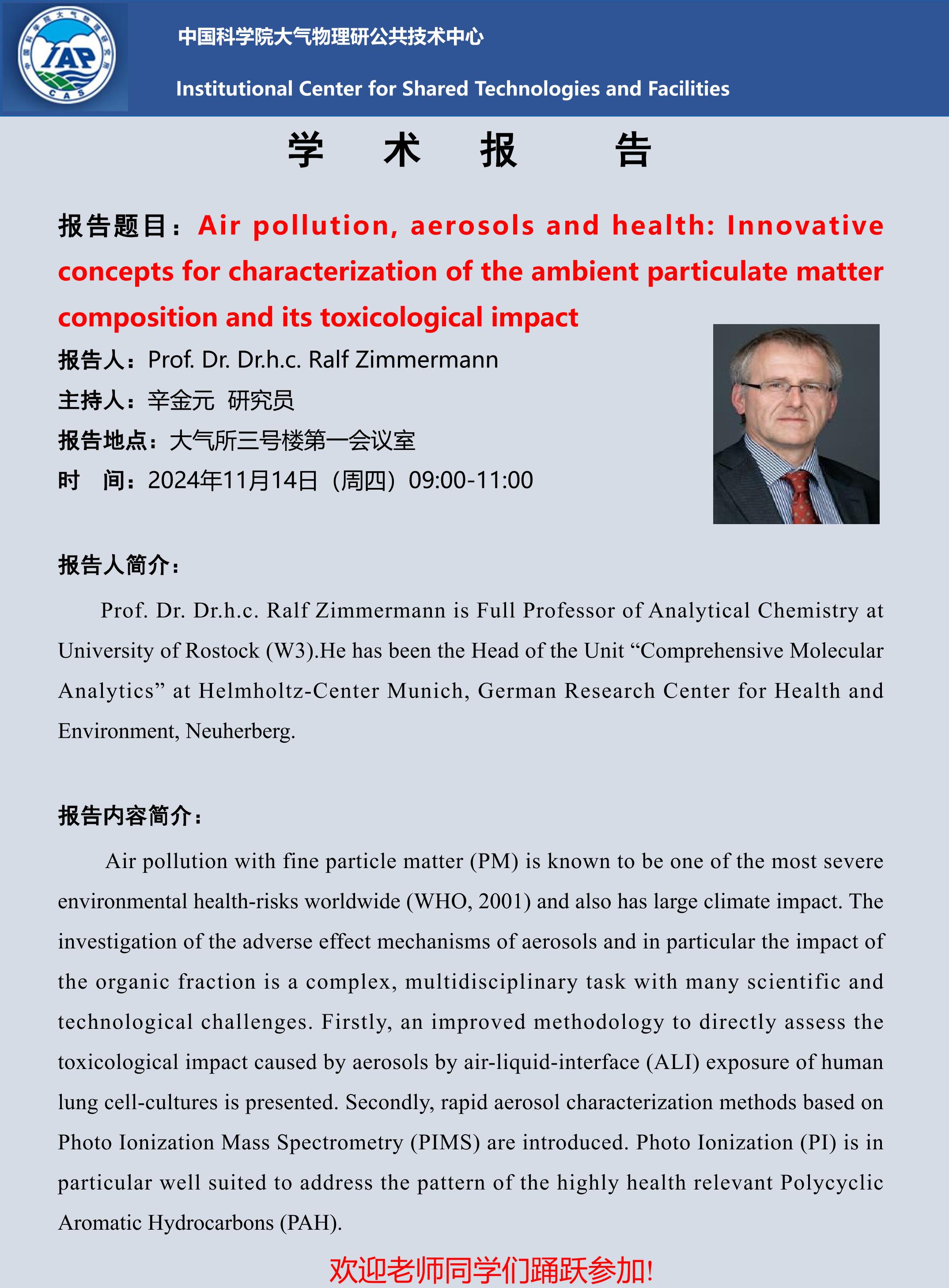【11.14】Air pollution, aerosols and health: Innovative concepts for characterization of the ambient particulate matter composition and its toxicological impact