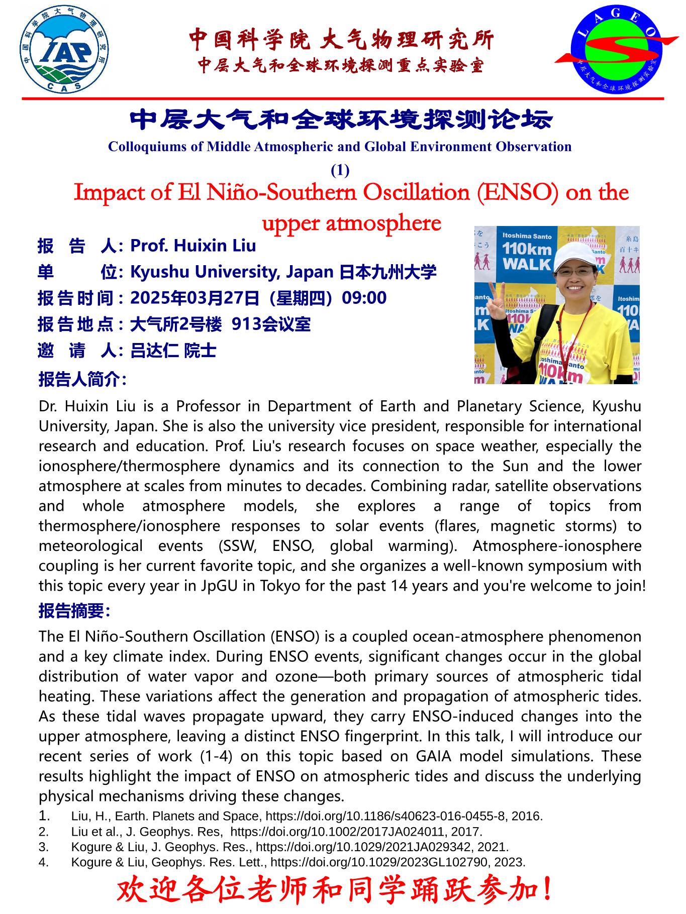 【3.27】Impact of El Niño-Southern Oscillation (ENSO) on the upper atmosphere