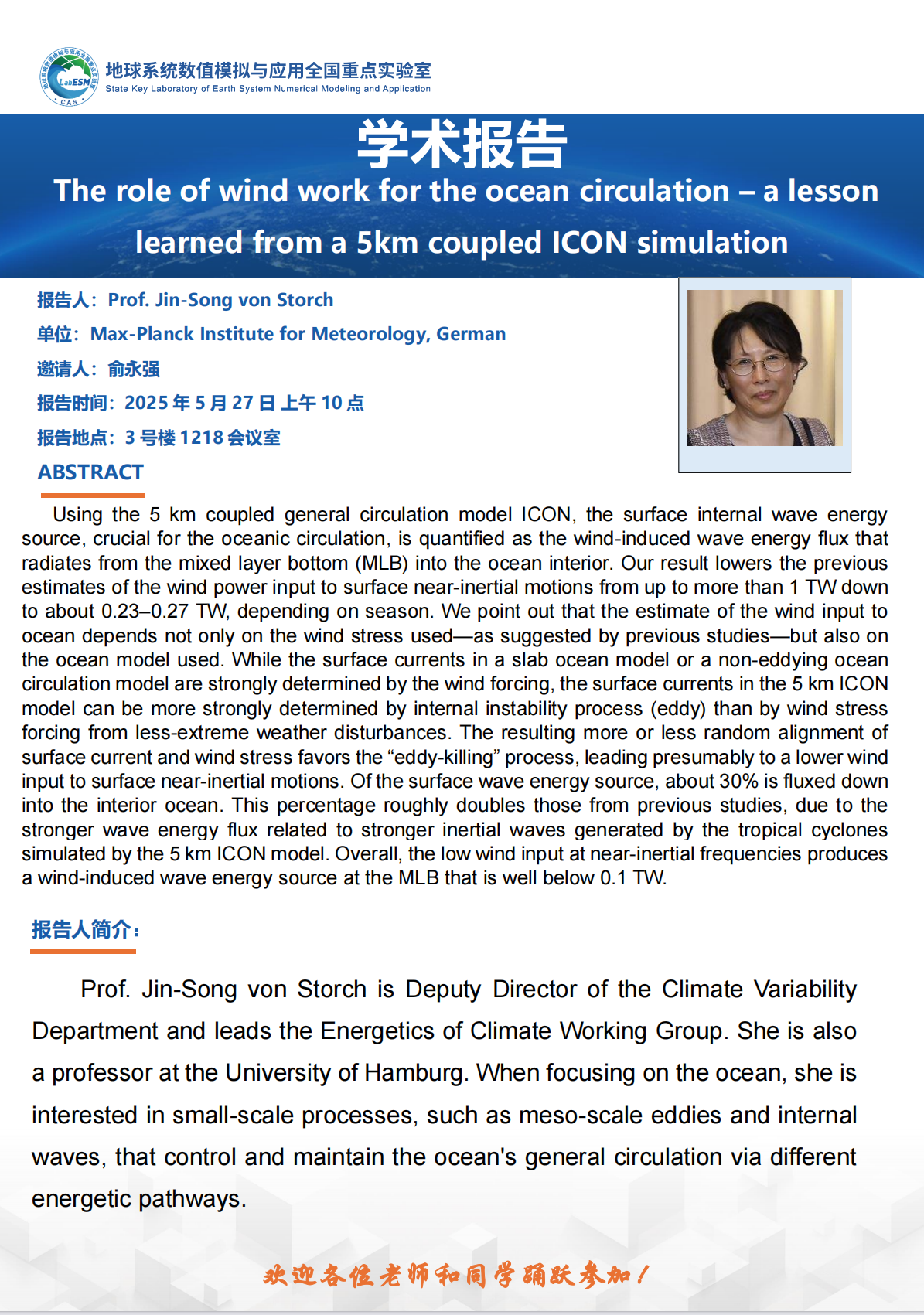 【5.27】The role of wind work for the ocean circulation – a lesson learned from a 5km coupled ICON simulation