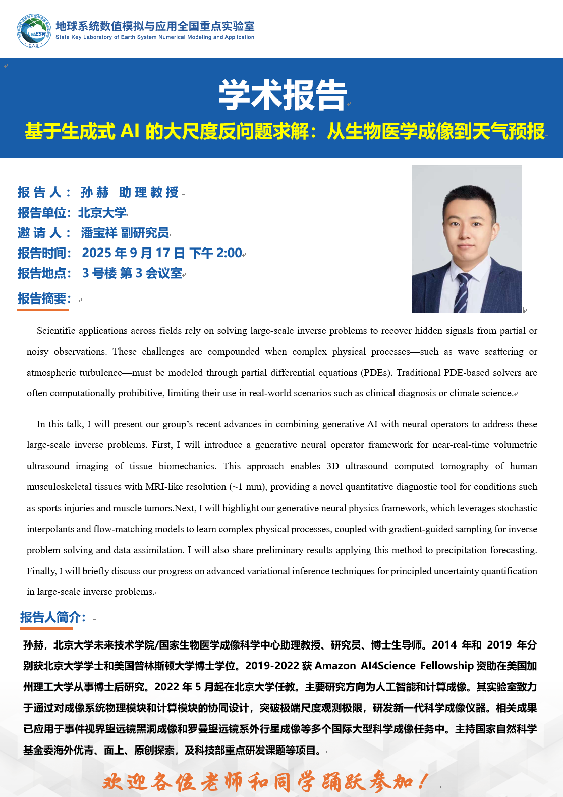 【9.17】基于生成式AI 的大尺度反问题求解:从生物医学成像到天气预报