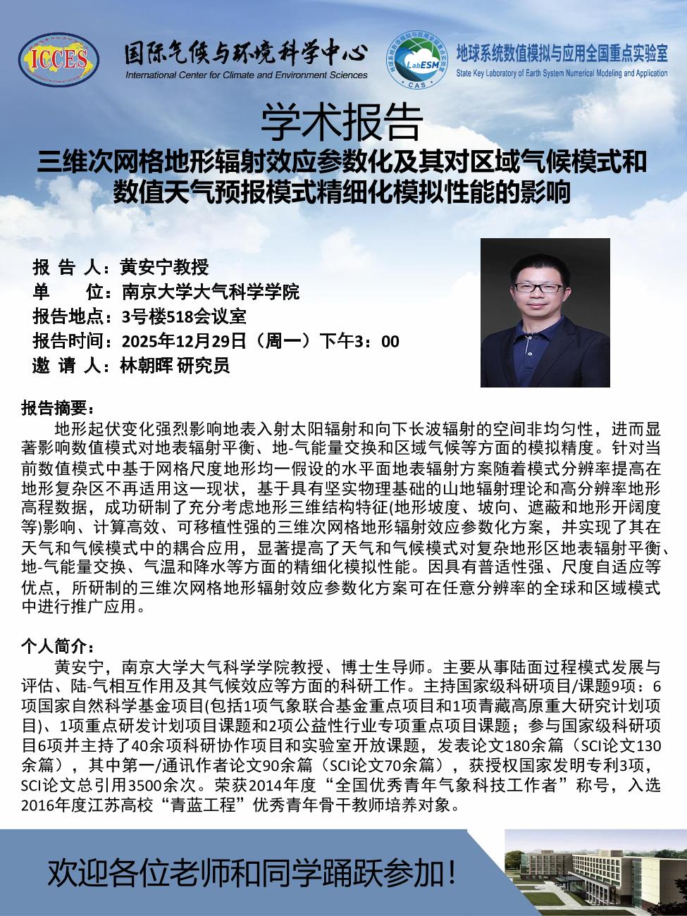 【12.29】三维次网格地形辐射效应参数化及其对区域气候模式和数值天气预报模式精细化模拟性能的影响