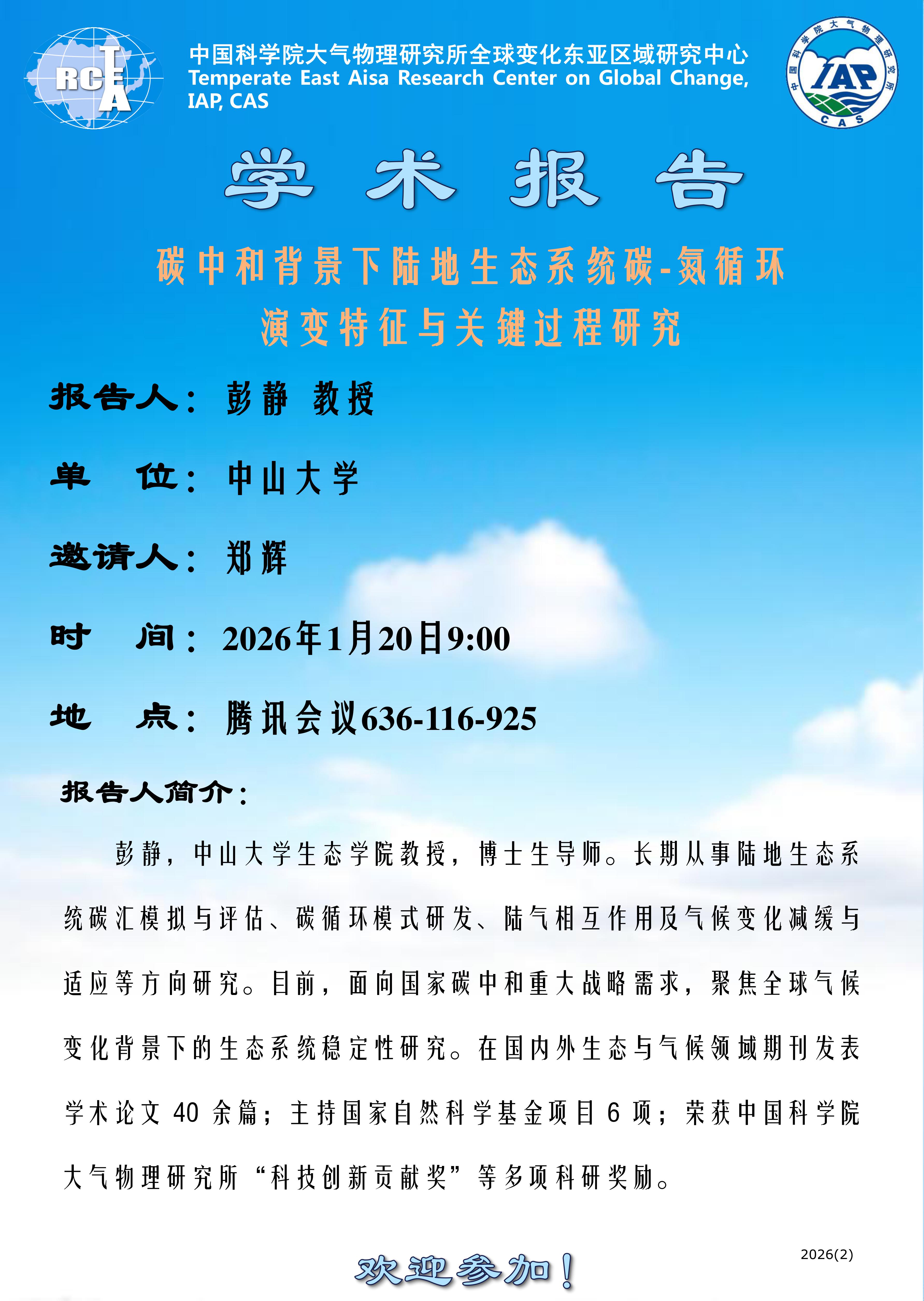 【1.20】碳中和背景下陆地生态系统碳-氮循环演变特征与关键过程研究