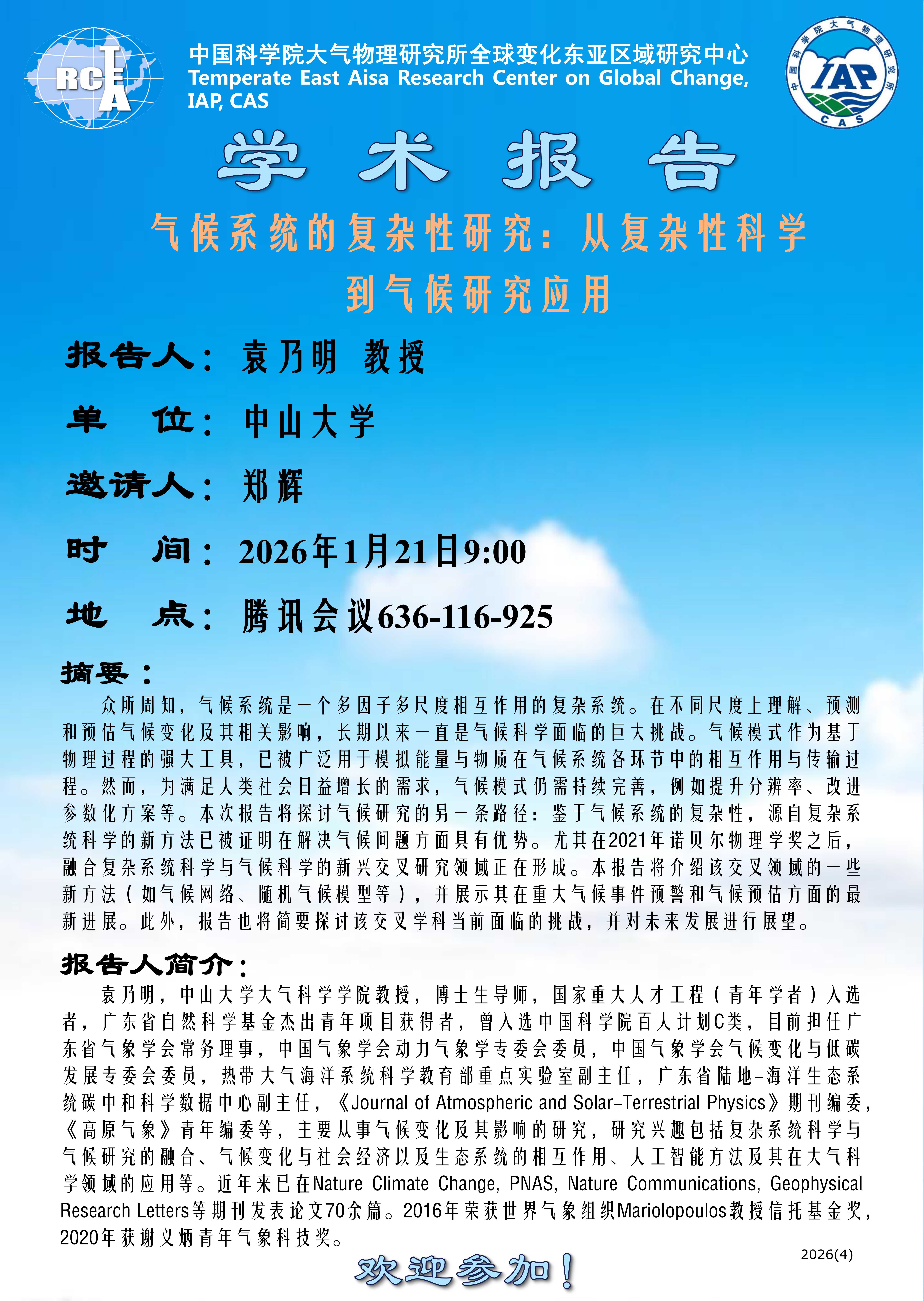 【1.21】气候系统的复杂性研究:从复杂性科学到气候研究应用