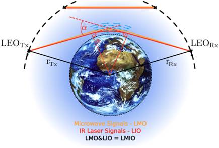 该卫星拟通过地球低轨道卫星间微波与红外激光掩星探测,获取特定频率与谱段的相位和幅度变化信号,反演大气温度、湿度和压强,H2O、CO2、CH4、N2O、O3和CO等多种气体成分廓线,并结合红外成像实现三维立体探测(图1、图2)。