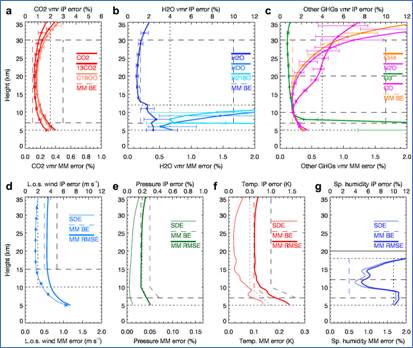 图2大气温压湿风及H2O、CO2、CH4、N2O、O3等廓线仿真误差分布