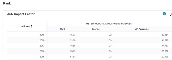 2020年6月29日由科睿唯安(原汤森路透知识产权与科技事业部)发布的2019年最新《期刊引证报告》(Journal Citation Reports,简称JCR)显示,大气所主办的英文期刊《大气科学进展》(Advances in Atmospheric Sciences, 简称AAS)在保持发文量的基础上,影响因子稳步提升,最新影响因子为2.583,在“气象与大气科学”领域的93本期刊里排名45,位于Q2区,均为AAS历史最高水平。