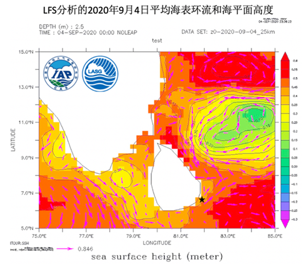 9月3日,一艘载有27万吨原油的油轮在斯里兰卡东南海域距离海岸20海里处起火,船舶失去动力,存在发生严重原油泄漏的隐患。应中国科学院中国-斯里兰卡联合科教中心邀请,大气所海洋模式团队使用自主研发的全球10km涡分辨的海洋环境预报系统LICOM Forecast System(LFS)对该区域海洋环境要素进行了实时分析和预报,提供了包括海表流场、海表温度场等海洋环境信息,经由中国科学院中国-斯里兰卡联合科教中心,在第一时间将结果发送给斯里兰卡海洋环境保护局和斯南部省减灾部门,为事故救援提供科学数据支撑,并在后续的救援中持续提供海洋环境预报产品。
