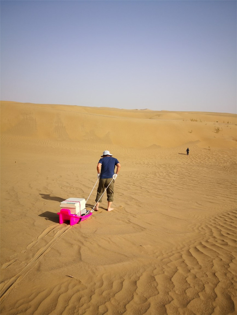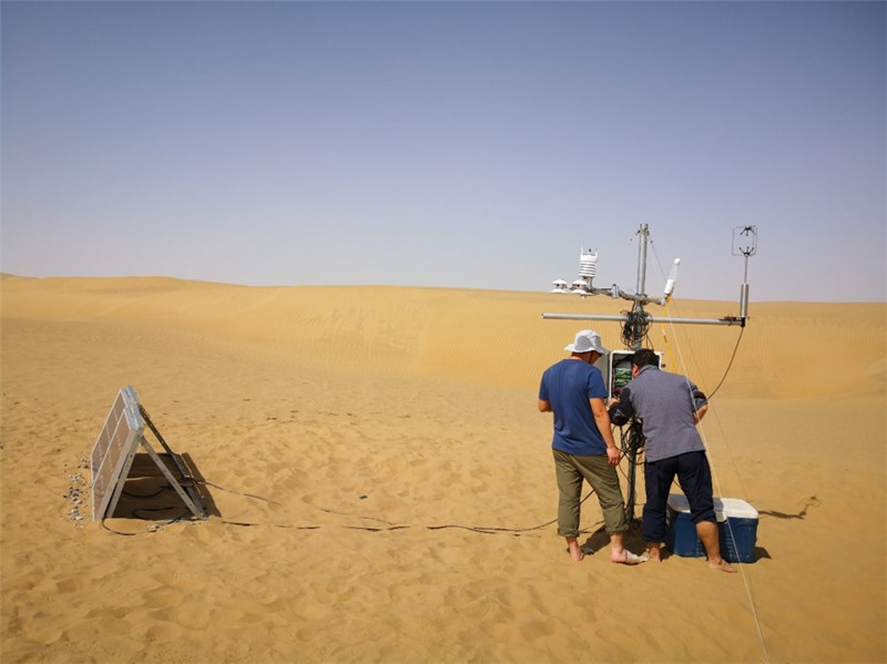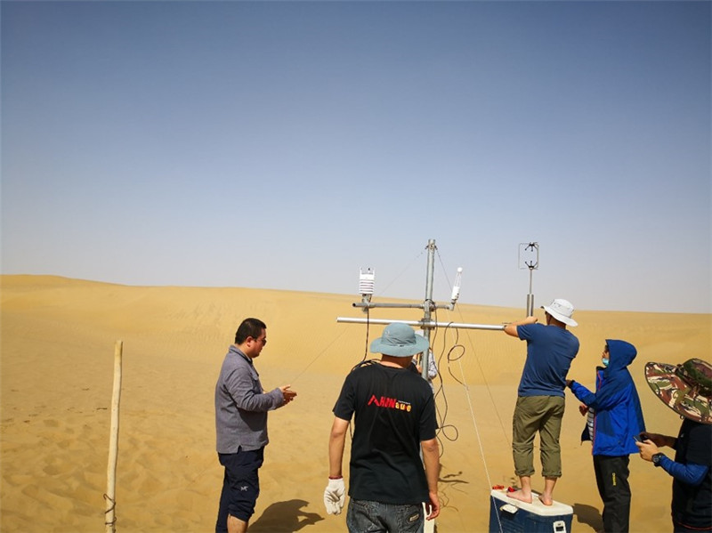 为正确认识塔克拉玛干沙漠起伏地形上的地气交换过程和大气边界层结构,在国家自然科学基金委重点项目支持下,中国科学院大气物理研究所联合中国气象局乌鲁木齐沙漠气象研究所,于2020年共同启动了塔克拉玛干沙漠观测实验。该实验拟沿典型沙垄剖面建立5个观测站,布设大气辐射系统和涡动协方差系统,在塔中气象站布设风廓线激光雷达系统以及温湿廓线激光雷达系统,同时释放无人机,形成对塔克拉玛干沙漠腹地非均匀下垫面上大气边界层结构和地气交换过程的立体和连续探测。目前,观测人员正在塔中地区建立观测站点和布设观测设备。该观测实验拟持续一年。(低层大气探测部供稿)