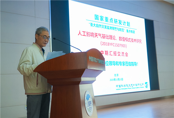 2020年10月20日,由中国科学院大气物理研究所牵头,联合中国气象科学研究院、陕西省气象科学研究所、南京大学、南京信息工程大学以及河北省、吉林省、辽宁省、内蒙古自治区人工影响天气办公室等有关单位共同承担的国家重点研发计划“重大自然灾害监测预警与防范”重点专项“人工影响天气基础理论、数值模式技术研究”项目(编号:2018YFC1507900)中期汇报交流会在北京召开。项目依托单位有关负责人、项目责任专家刘树华教授和李维京研究员,项目汇报检查专家组李集明研究员、陈添宇研究员、银燕教授、蔡军研究员、段英研究员、李宝东研究员、石立新研究员、靳瑞军研究员、洪延超研究员和郭学良研究员,及课题负责人和项目骨干60余人参加了会议。