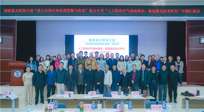 会议由项目责任专家北京大学刘树华教授和项目首席科学家雷恒池研究员共同主持。雷恒池研究员汇报了项目的总体进展,随后五位课题负责人分别就各课题的重要进展做了汇报。项目成果涵盖发展可业务化的新一代人工影响天气数值模式系统、层状云人工增雨研究、冰雹云的早期识别和联防作业、新型催化剂的研发及人工影响天气综合效果评估技术的发展,以期服务于我国人工影响天气作业,为缓解水资源短缺、保障农业生产和生态文明建设等提供技术支撑。