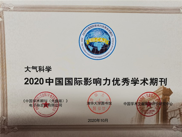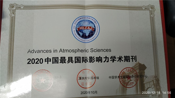 2020年12月18日,由中国学术文献国际评价研究中心和清华大学图书馆研制、《中国学术期刊(光盘版)电子杂志社有限公司》出版的《中国学术期刊国际引证年报》(2020版)发布。大气所主办期刊《Advances in Atmospheric Sciences》、《大气科学》、《Atmospheric and Oceanic Science Letters》再次上榜。