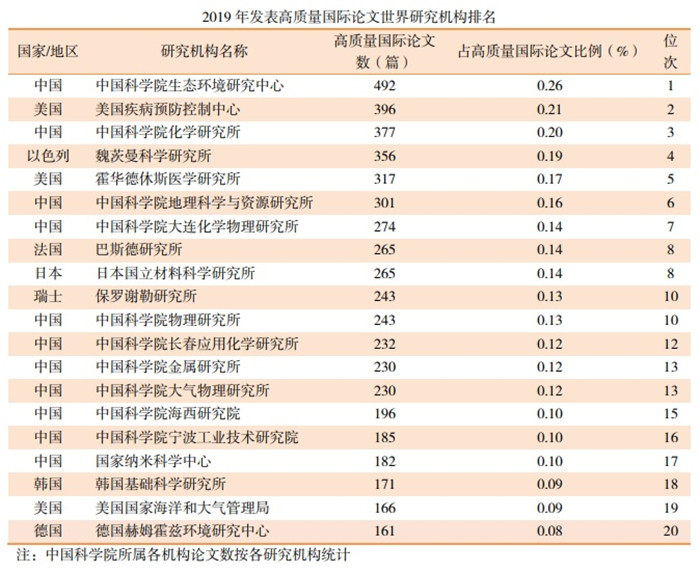 此次统计报告的亮点为,中信所将各学科影响因子和总被引次数同居本学科前10%,且每年刊载的学术论文及述评文章数大于50篇的期刊,遴选为世界各学科代表性科技期刊,在其上发表的论文属于高质量国际论文。2019年发表高质量国际论文数量最多的世界研究机构中,中国科学院有11所机构进入前二十,大气所以230篇排在第13位。排名超过美国国家海洋和大气管理局、德国赫姆霍兹环境研究中心。(科技处供稿)