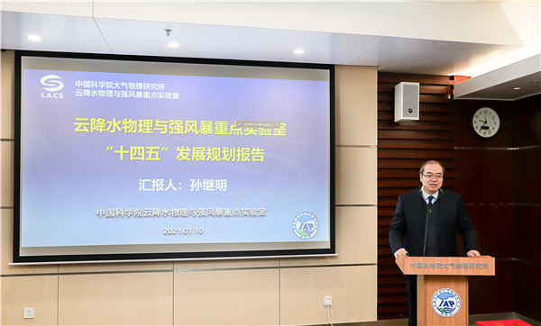 中国科学院云降水物理与强风暴重点实验室(LACS)2020年度学术委员会会议于2021年1月10日在中科院大气物理研究所顺利召开。此次会议采取现场、网络视频同步的形式进行。实验室学术委员会主任谈哲敏教授、学术委员会副主任孟智勇教授、学术委员会委员戴永久院士、王业桂研究员、毛冬艳正研级高工、赵春生教授、银燕教授、赵传峰教授、周天军研究员、郭学良研究员、崔晓鹏研究员、孙继明研究员,顾问委员会委员丁一汇院士、毛节泰研究员、胡志晋研究员、许焕斌研究员、赵思雄研究员、洪延超研究员、高守亭研究员、牛生杰教授等参加了此次会议。应邀参加会议的还有大气所曹军骥所长、科技处姚利处长,中科院前沿科学与教育局地球科学处段晓男处长、中科院重任局资环生物处任小波处长和朱灵。
