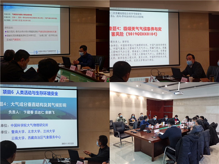 2021年1月12日,第二次青藏科考领导小组和项目管理办公室薛强、李加洪、许谦、范治成调研访问大气所。大气所所长曹军骥,党委书记陆日宇,项目专题负责人郭学良、卞建春,科技处处长姚利,财务处处长袁晨等出席座谈会。会议由陆日宇主持。