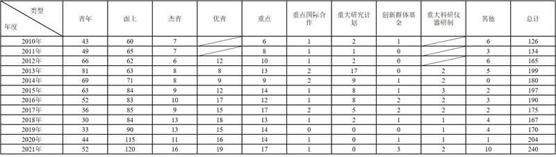 附表1 2010-2021年基金集中申报期间各类型项目申请情况