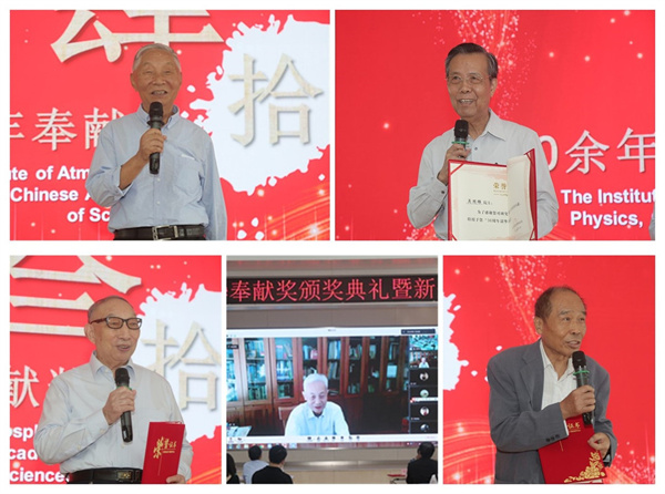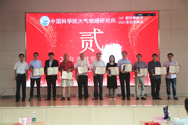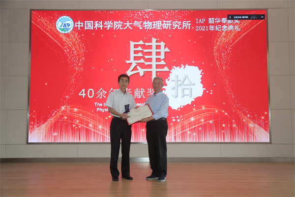 典礼在庄严的国歌声中拉开序幕。陆日宇首先致辞并宣读《中国科学院大气物理研究所关于授予曾庆存等44名研究生导师2021年韶华奉献奖的决定》。陆日宇在致辞中首先代表研究所对获奖教师表示祝贺和感谢!他表示十年是每个人职业生涯的里程碑,研究生导师既是研究所发展的见证者、贡献者;又是学科发展的开拓者、推动者;更是研究生的引路者、奉献者。为了感谢每位导师的持续奉献,自2021年起设立导师韶华奉献奖,为满“十”倍数年及三十年以上和当年退体的研究生导师颁发纪念奖。他希望全所导师不忘初心和使命,永葆育人情怀和奋进精神,为我国大气科学事业的发展、为研究所的发展贡献自己的力量。