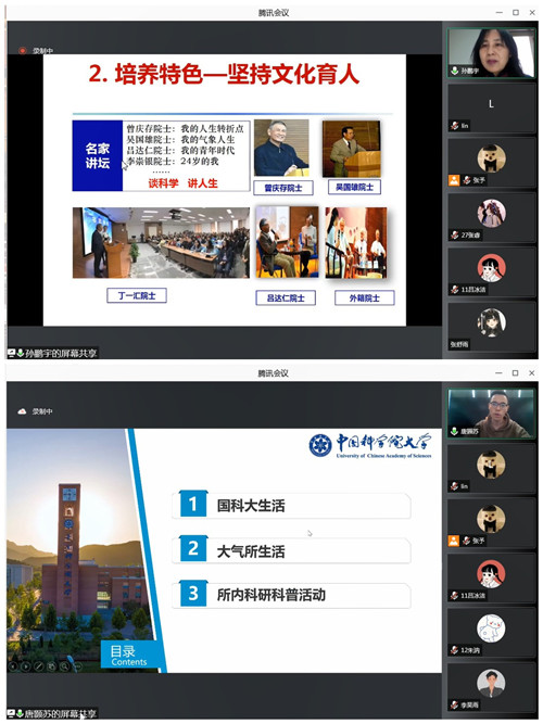 此外,研究生部主任孙鹏宇给营员们介绍了大气所研究生培养特色和招生情况;3位刚毕业或在读的学长学姐在为营员答疑解惑中分享了他们眼中的大气所。从丰富多彩的集中教学阶段到充实快乐的所内科研生活,学长学姐们的成长和自信更激发了长望学子对大气所的向往。
