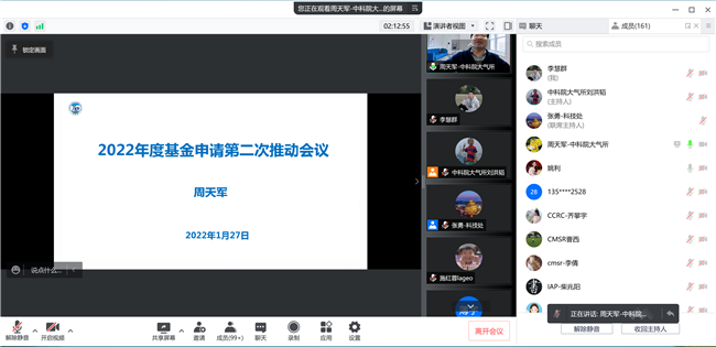 2022年基金申请工作已经拉开帷幕,为帮助我所科研人员及时准确地把握国家自然科学基金资助的最新政策动向,充分做好本年度自然科学基金的申请工作,1月27日下午,科技处组织召开了大气所2022年度国家自然科学基金项目申请工作第二次推进会议。会议采用线上视频会议形式举行,由科技处处长姚利主持,全所二百余位科研人员线上参加了会议。
