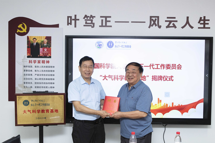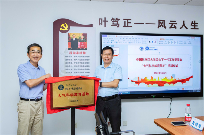 9月8日上午,“大气科学教育基地”揭牌仪式在大气所叶笃正纪念室举行,庆祝我所成为首家中国科学院大学关心下一代工作委员会(以下简称国科大关工委)二级委员会教育基地。大气所党委书记陆日宇,国科大党委副书记高随祥、所学术委员会主任吴国雄院士、纪委书记占车生、国科大关工委副主任吕晓澎、大气科学教育基地主任陈洪滨、东亚中心主任丹利、高登义研究员等出席揭牌仪式。陆日宇、高随祥共同为“大气科学教育基地”揭牌,揭牌仪式由陆日宇主持。