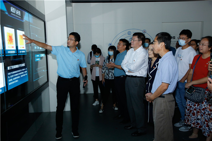 首先,陆日宇对自然科学基金委地球科学部党支部全体党员干部的到来表示热烈欢迎,对科学基金给予大气所科研工作的支持和帮助表示感谢,并希望通过交流研讨进一步反映大气科学的学科需求,帮助大气科学在地球科学领域发挥更大的作用,为促进地球系统研究范式的变革贡献力量。随后大家观看了地球系统数值模拟装置的介绍短片,大气所正研级高工唐晓带领大家参观了科普展厅,介绍了模拟装置的建设背景、建设过程、已取得的科研成果。