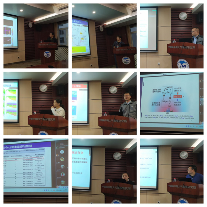 专家们通过对各项目发展态势的诊断分析,客观评价其进展和成效,判定目标完成度,并及时指出项目科研进展中发现的问题并提出建议,为年轻科研人员未来的独挑大梁加油助威和献计献策。各位报告人积极准备,汇报认真,进展可喜。王晓聪在“构建次网格云生成器改进气候模式云辐射过程计算”的研究中基于卫星观测提出新的云次网格结构参数;柴兆阳项目(费可测代讲)“CAS-ESM中高层大气环流模式关键参数化方案的改进与应用”研究中完成了新一代中高层大气环流模式软件IAP-AGCM-HT 2.0版本动力框架的构建;邹立维“青藏高原夏季水循环的对流解析预估研究”揭示了对流解析模式对青藏高原水循环模拟的增值及其季节差异特征;李娜负责的“基于大涡模拟的致灾对流触发和升尺度机理研究”探索了1km以下的高分辨率模拟对灾害性对流的实际预报能力;陈学舜的“全球碳氮大气化学和陆地生物地球化学过程相互作用的数值模拟研究”收集和制备了近15年全球1度分辨率清单;唐贵谦在“大气臭氧收支平衡垂直观测研究”中发现了氮氧化物在边界层上部和下部对臭氧生成的截然相反的机理;施红蓉“基于风云4卫星和深度学习的光伏功率短临预测研究”通过随机森林回归学习技术开发了一套可移植应用的光伏短临外推预测程序;李艺苑的“火星大气环流数值模式的初步构建”开创性地构建了预报模式,并完成了自主火星大气环流模式动力框架的稳定积分,为早日服务我国的火星探测任务提供气象保障奠定了基础;朱金焕在“北极航道重点区域极端大风”研究中发现极端大风的季节变化是由冰川风下泄流的变化主导的;吴雪的“对流性重力波三维特征及其临近空间环境效应研究”通过数值模拟揭示了重力波活动与热带气旋深对流活动的联系和机理等等。