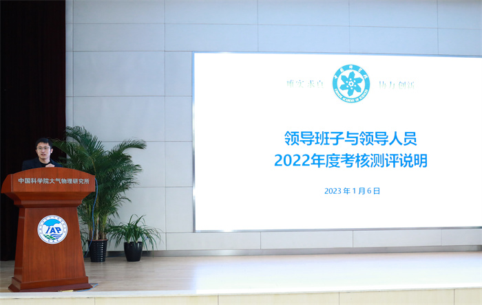 2023年1月6日上午,大气所召开了2022年度全所工作总结表彰暨所领导年度考核测评会议。为防控疫情,此次会议采取线上线下结合的形式,线下80余人、线上近300人参会。大会由所党委书记陆日宇主持。