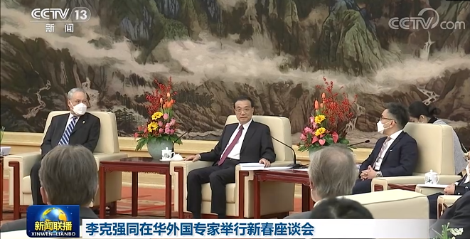 在座谈会上,李克强总理首先向大家致以新春祝福和诚挚问候,感谢在华外国专家长期以来关心支持中国改革开放和现代化建设事业,希望多为中国政府工作建言献策。李克强强调,中国愿学习借鉴先进技术和管理经验,继续同各国开展广泛国际合作,维护世界和平稳定与发展繁荣。中国政府欢迎更多外国人才来华工作,将进一步优化工作许可人才签证和停居留政策。完善落实税收、购汇、社保、医疗、子女入学等政策,为外国人才安心在华工作提供保障。