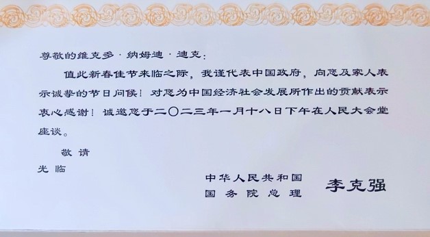 2023年1月18日下午,国务院总理李克强在人民大会堂亲切会见在华工作的35名外国专家代表并同他们座谈交流,中国科学院大气物理研究所聘用的外国专家Victor Nnamdi Dike作为中国科学院外国专家代表之一参加了此次座谈会。