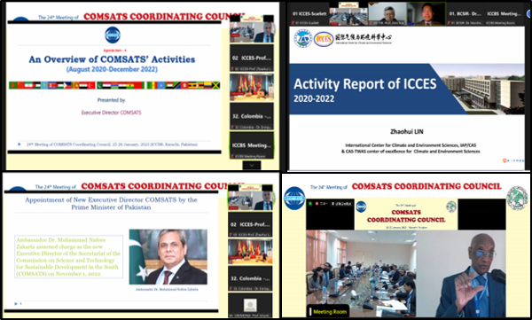 中国为COMSATS创始成员国,大气所国际气候与环境科学中心(ICCES)代表我国最早成为该国际组织的卓越中心,中心创立主任曾庆存院士担任首届COMSTAS协调委员会委员。在本次会议上,COMSATS协调委员会委员、ICCES主任林朝晖研究员详细介绍了中心2020年至2022年期间在南南合作、落实联合国可持续发展议程方面的工作,主要包括国际合作网络拓展、与COMSATS成员国和其他卓越中心的合作交流、举办高水平国际会议、能力建设与人才培养等方面的亮点工作,并倡议依托大气所已建成的地球系统数值模拟大科学装置,拓展与COMSATS成员国及卓越中心在气象环境灾害风险预测预警、应对气候变化、保障粮食安全、落实联合国可持续发展目标方面开展更紧密的合作。(ICCES供稿)