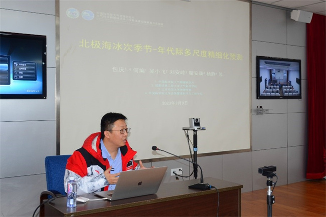 包庆首先介绍了大气所“北极海冰次季节-年代际多尺度精细化预测”的最新进展,并就其在北极航线气象保障中的应用现状及前景与各方专家进行交流。北极航线具有极其重要的战略意义,能为我国提供更多的能源和资源供给渠道,保障我国的能源安全和经济安全。北极航线的开通能够缩短中国到西欧和北美的海上运输航程和时间,为我国北方港口带来重大发展机遇。他表示,最新的海冰多尺度精细化预测系统能够为北极航线提供更准确的气象、海洋和海冰预测服务,为船舶航行安全提供保障。